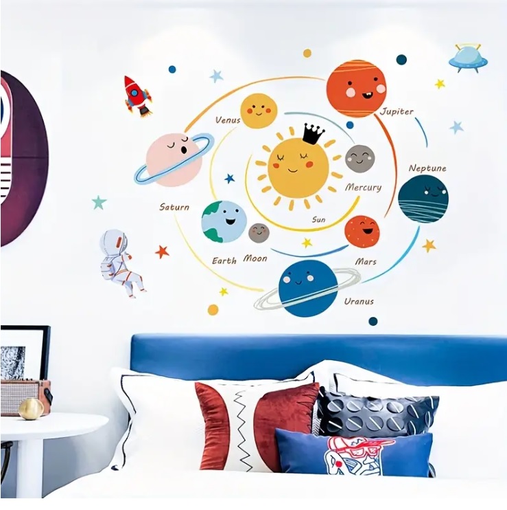 Me gustó mucho este vinil, es realmente hermoso, mi hijo está cada vez más centrado en el tema del espacio y los planetas, este diseño es perfecto para que se familiaricen con el tema. Gracias